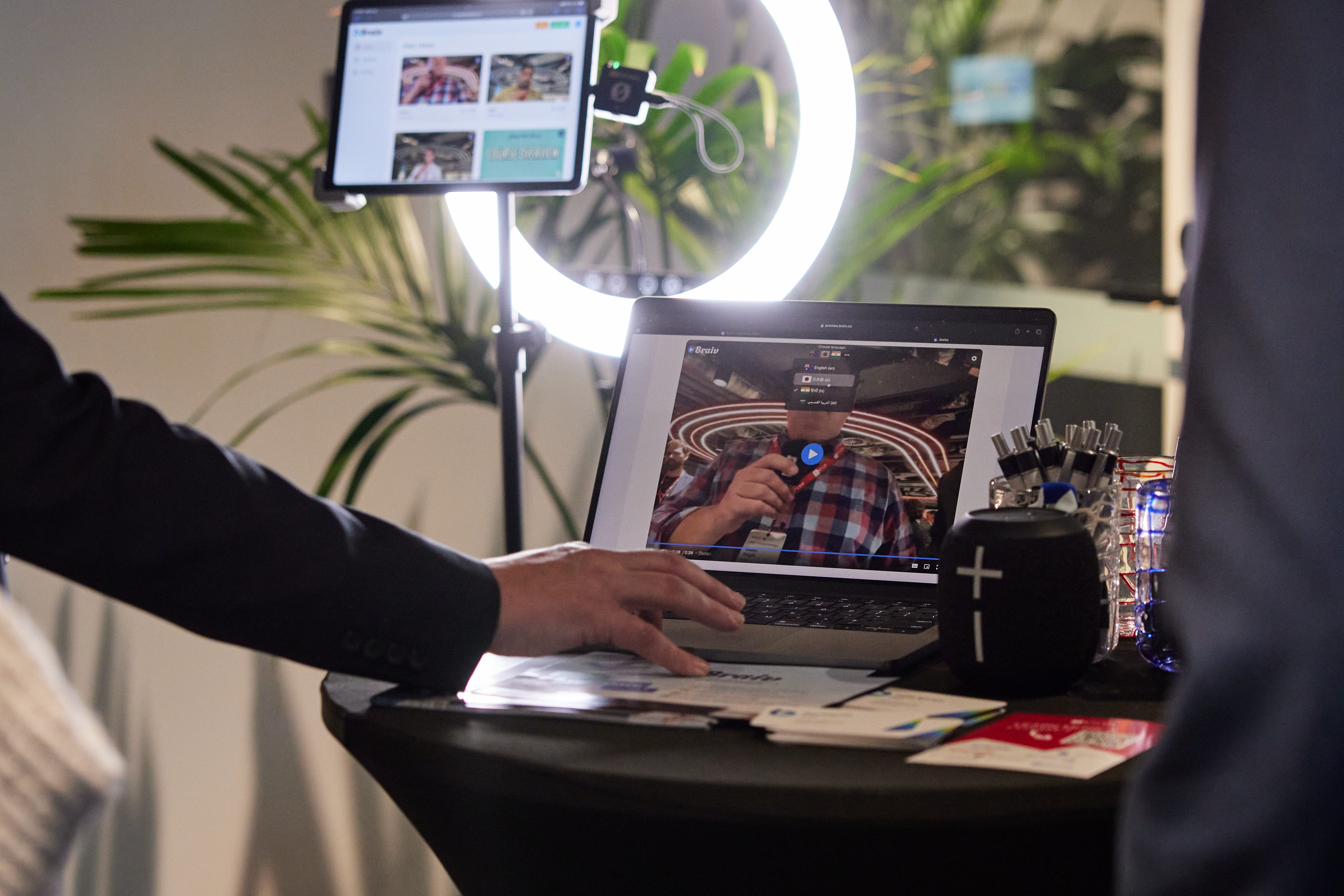 Visitors were invited to record themselves asking some quick questions, choose a couple languages to dub themselves into, and within a few minutes they were viewing themselves speaking, IN THEIR VOICES, in another langauge. Enhanced by the fact they could simply toggle between languages via Braiv Player.